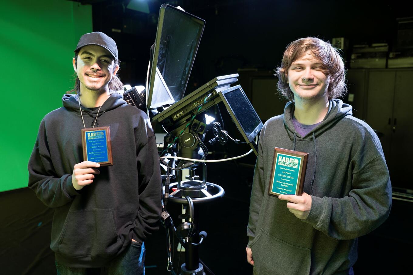 Two Kansas Association of Broadcasters Student Production awards are headed to Butler Community College, with students Evan Sinclair of Everest, KS, and Cole Wert of Wichita earning recognition for their work in video and audio programming.