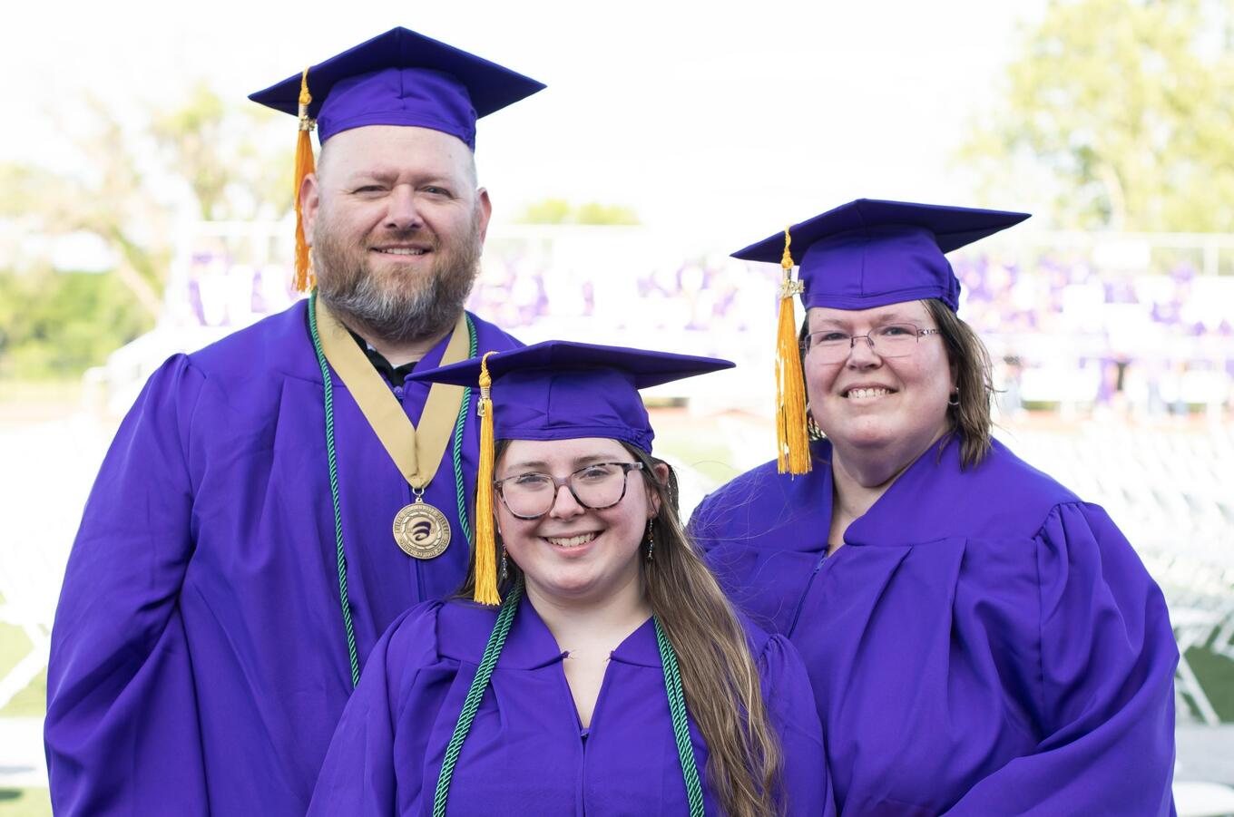 For the second year in a row, Butler Community College graduation features family members graduating together, as Edward (Eddie), Tabitha and Madisen (Madi) Ciesielski of Valley Center walked together at the 2024 Commencement.